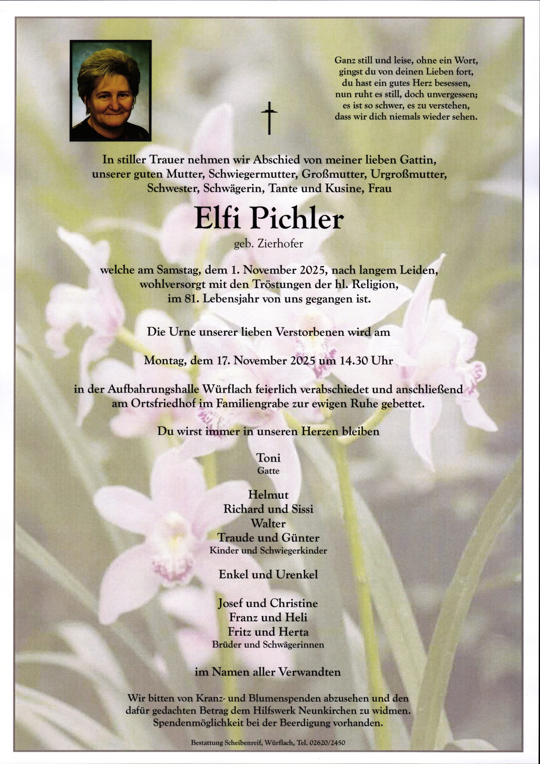Aktueller Sterbefall: Elfriede Pichler