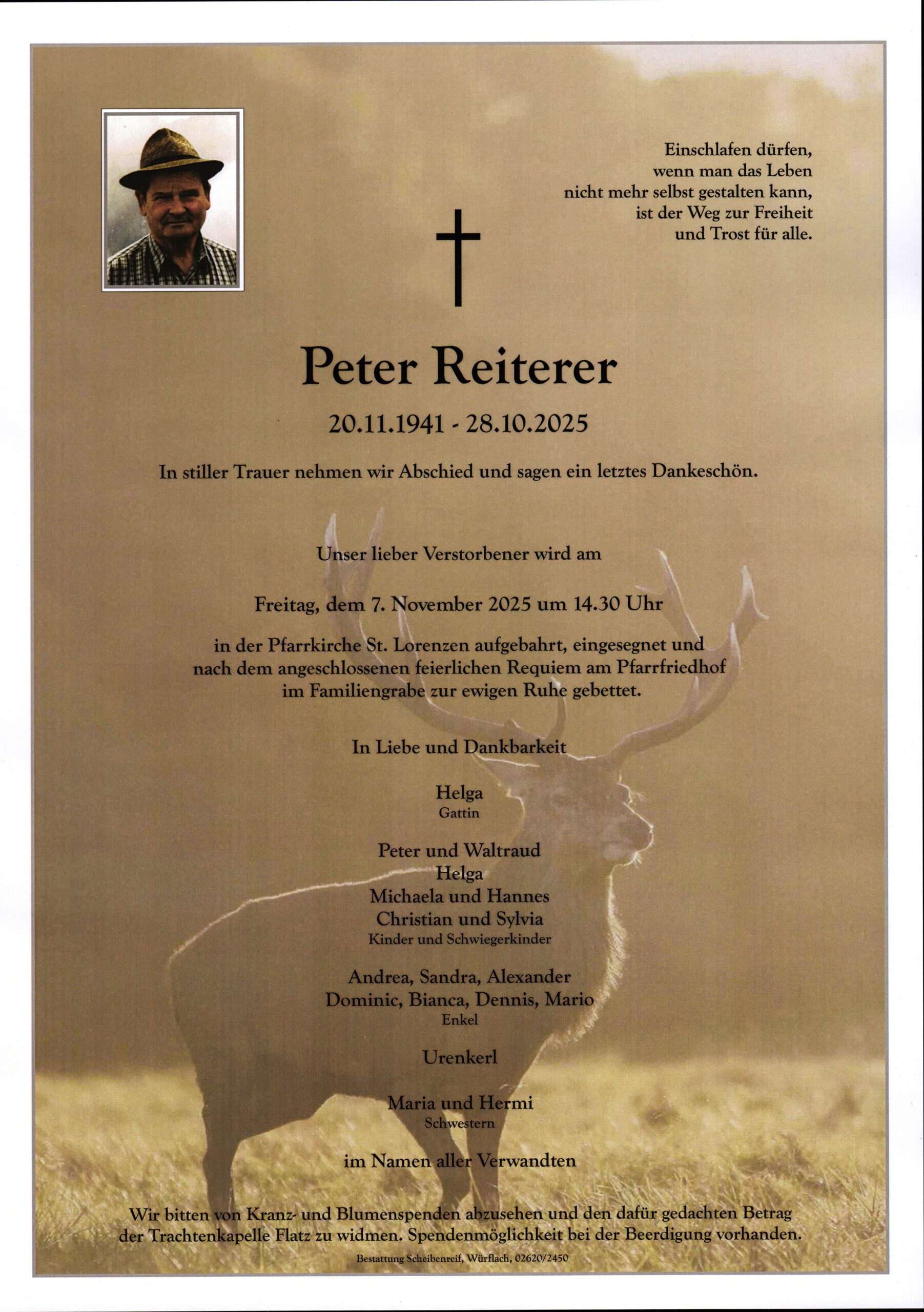 Familie Lauterbach/Ingerl am 31/10/2025 um 19:18 Möge die Erinnerung an die gemeinsame Zeit euch Trost spenden. Aufrichtiges Beileid Erika, Wolfgang, Tanja und Daniel Antworten